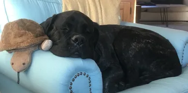 “I was a little nervous about purchasing a puppy over the Internet but was immediately put as ease because Stephanie stayed in contact with me throughout the whole process. She provided frequent updated photos and stories about the latest puppy adventures. One of the best parts was the interaction between some of the other puppy “parents.” Many of us have kept in touch and are sharing our experiences with these beautiful babies. When Lord Stanley Kisser (Stanley) finally arrived in MD after a 2 day car ride, I was pleasantly surprised by how well he was already socialized. He is a healthy, happy, big wrinkly boy with a personality that matches his size. This has been the best experience with a breeder ever and I know that Kings Mastiffs Farm, is the only place I will get puppies now. Although patience is not one of my virtues, Stephanie made waiting for his arrival an enjoyable experience and it was definitely worth the wait!”